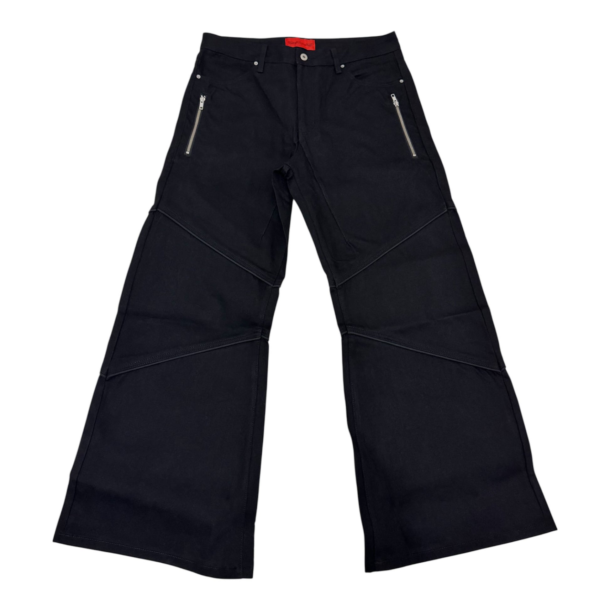- Wide-leg + flared fit